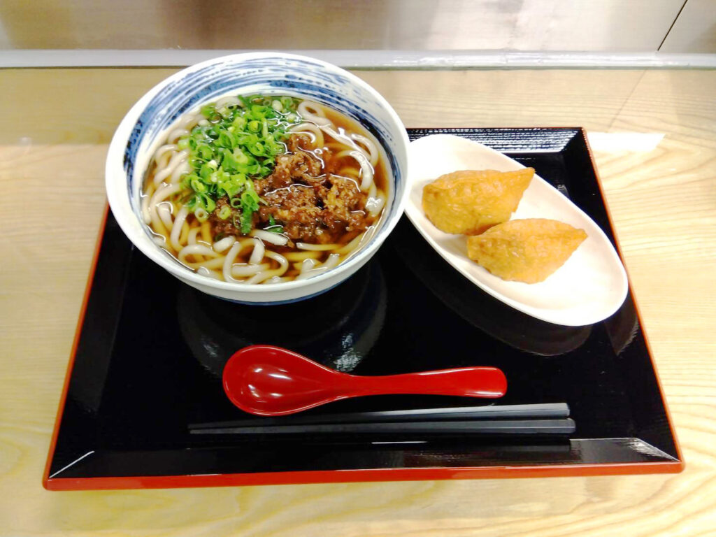メニューはうどん3種(肉、天ぷら、きつね)とおむすび、いなりです。