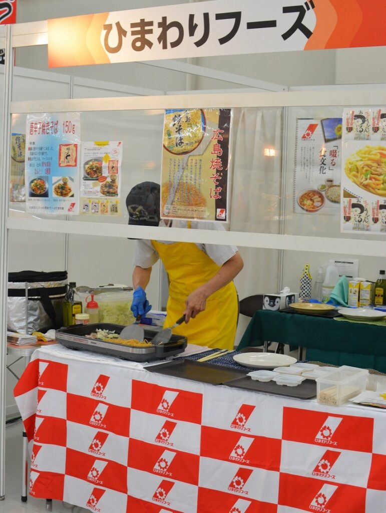 ひまわりフーズは、これからの季節にもぴったりのひまわりフーズの人気商品、「広島焼きそば」と「唐辛子焼きそば」の実演・ご紹介をさせていただきました。