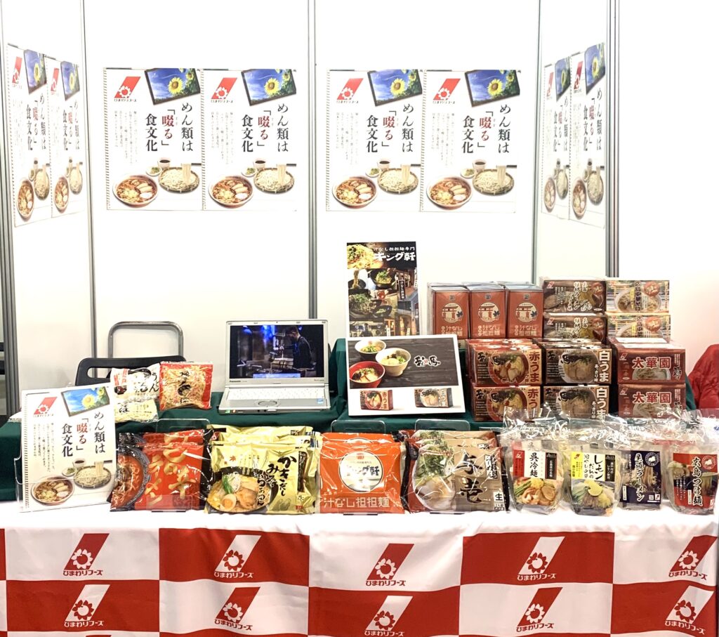 ひまわりフーズは、キング軒の汁なし担々麺、我馬の赤うま・白うま、太華園、新庄みそかきだしみそらぁめん、与壱、呉冷麺、広島つけ麺などの自慢の商品を展示しました。